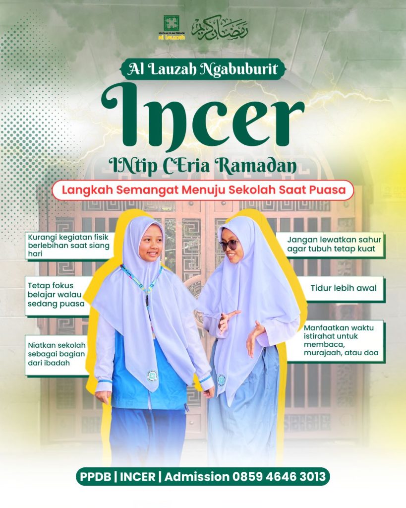 Melalui program INCER (INtip CEria Ramadan), SMP-SMAIT Al Lauzah mengajak para siswa untuk tetap produktif dan ceria selama menjalankan ibadah puasa.
