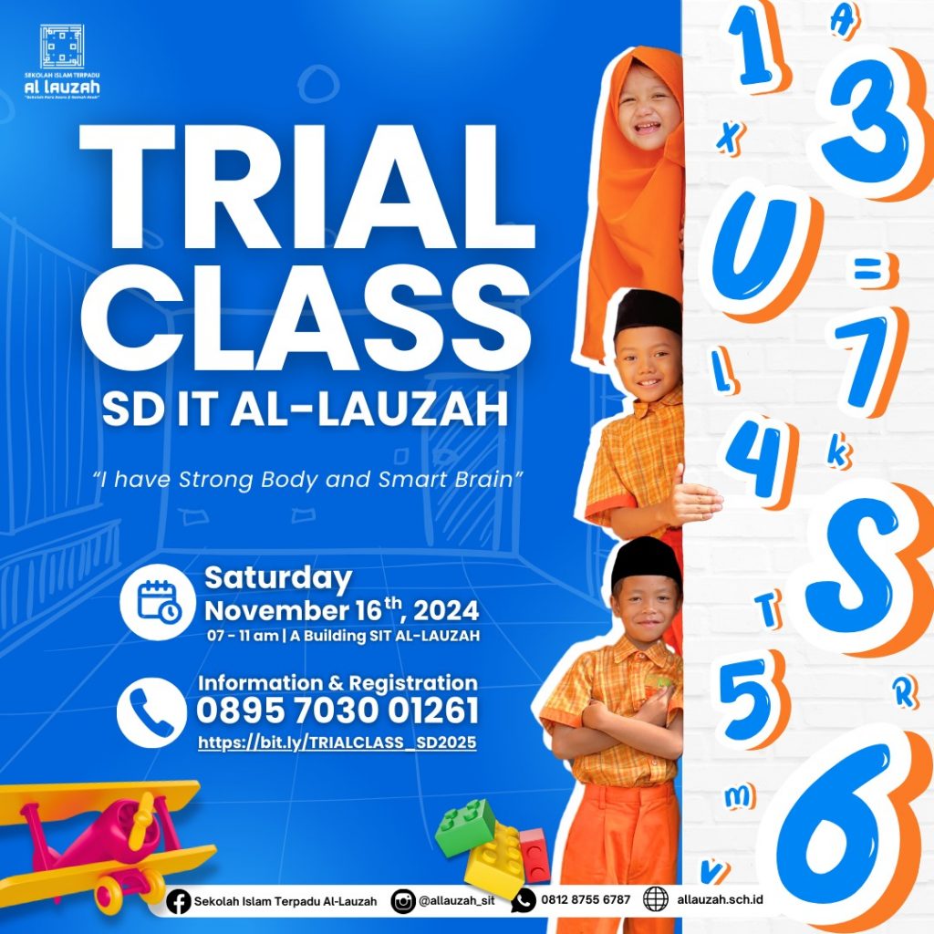 Kami mengundang anak-anak usia 5-6 tahun untuk mengikuti Class Trial di SD IT Al-Lauzah!