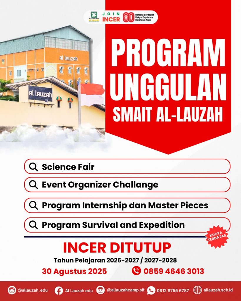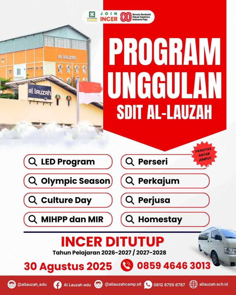 Info Penting Ayah Bunda Assalamu’alaikum Wr. Wb. Alhamdulillah, pendaftaran Program INCER (Investasi Cerdas) masih diberikan kesempatan tambahan untuk Ayah Bunda yang belum sempat mendaftar. Silakan hadir pada ⬇️ Sabtu, 6 September 2025 07.00 – 11.30 WIB Al-Lauzah ✨ Benefit INCER: ✅ Uang pangkal tidak mengikuti penyesuaian ✅ Free join ✅ Program angsuran ✅ Discount spesial […]