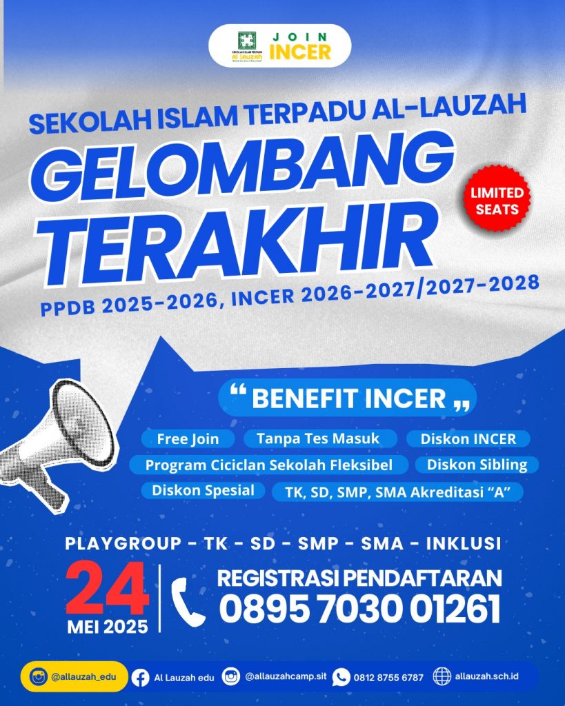 اَلسَّلَامُ عَلَيْكُمْ وَرَحْمَةُ اللهِ وَبَرَكَا تُهُ Ayah Bunda hebat, bagaimana kabarnya? Semoga Allah SWT senantiasa memberikan kesehatan untuk Ayah Bunda dan keluarga ya Mengingat saat ini Ananda berada di kelas TK B T.P 2025/2026, maka sudah saatnya mulai mempersiapkan jenjang selanjutnya! ✨ Saat yang TEPAT untuk JOIN Program INCER T.P 2026/2027 ✨ ❓ *KENAPA HARUS […]