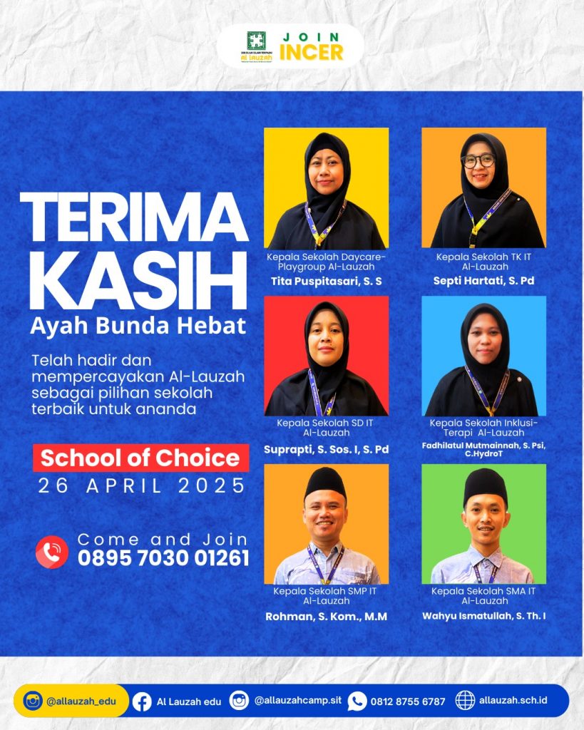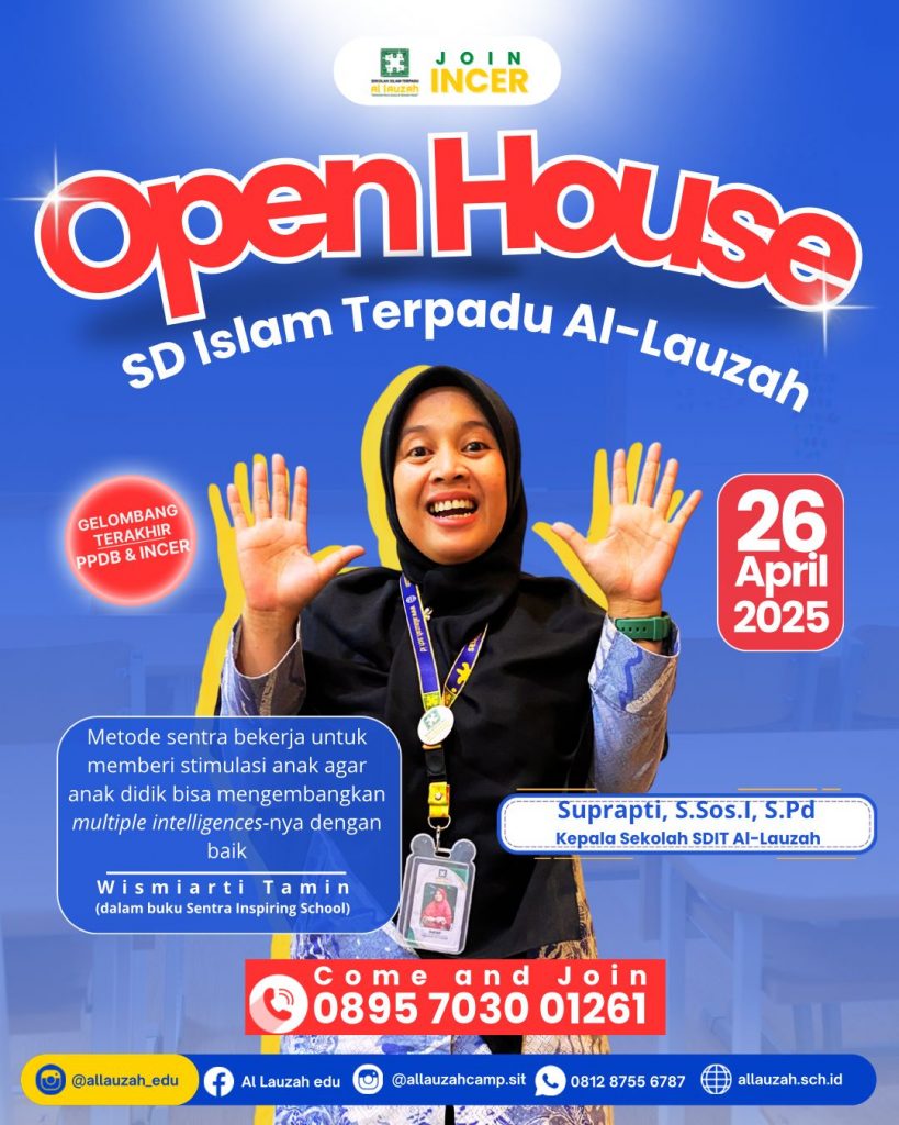 COMING SOON! OPEN SCHOOL PG-TK AL LAUZAH “Petualangan Seru Bersama Kendaraan Impian!” Bersiaplah untuk hari penuh keceriaan, kreativitas, dan eksplorasi bersama kendaraan favorit anak-anak! Untuk usia: 2–6 tahun Waktu: Segera diumumkan! Lokasi: PG-TK Al Lauzah, Serua Indah Akan ada: Arena jelajah kendaraan Mendongeng Zona bermain & School Class! Catat tanggalnya dan jangan sampai ketinggalan! Kuota […]