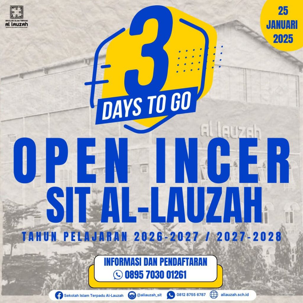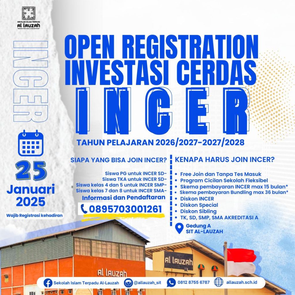 ✨ Jangan Lewatkan! ✨ Tanggal: 22 Februari 2025 Waktu: 07.00 – 11.00 WIB Tempat: Ged A (TK Al-Lauzah) Kuota Terbatas! Ayo ikut serta dalam Kegiatan INCER , Konfirmasi via whatsApp 0895 7030 01261 (Bunda Bela)