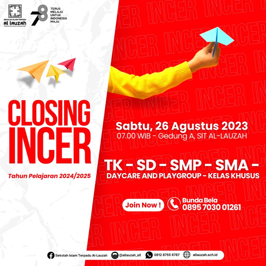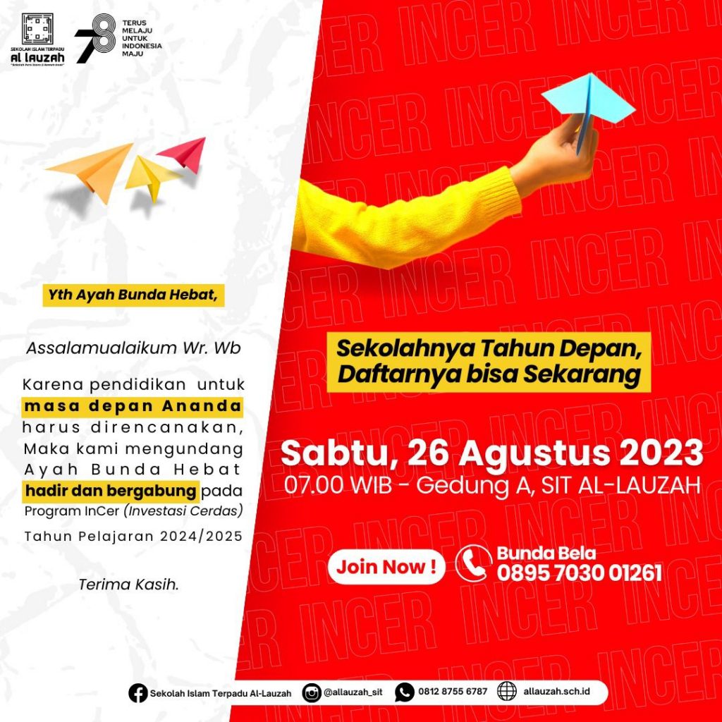 OPEN REGISTRATION OPEN DAY Tahun Pelajaran 2024/2025 Sabtu, 30 September 2023 07.30 -11.30 WIB Informasi lebih lanjut bisa menghubungi 0895 7030 01261 (Bunda Bela) Kuota semakin terbatas