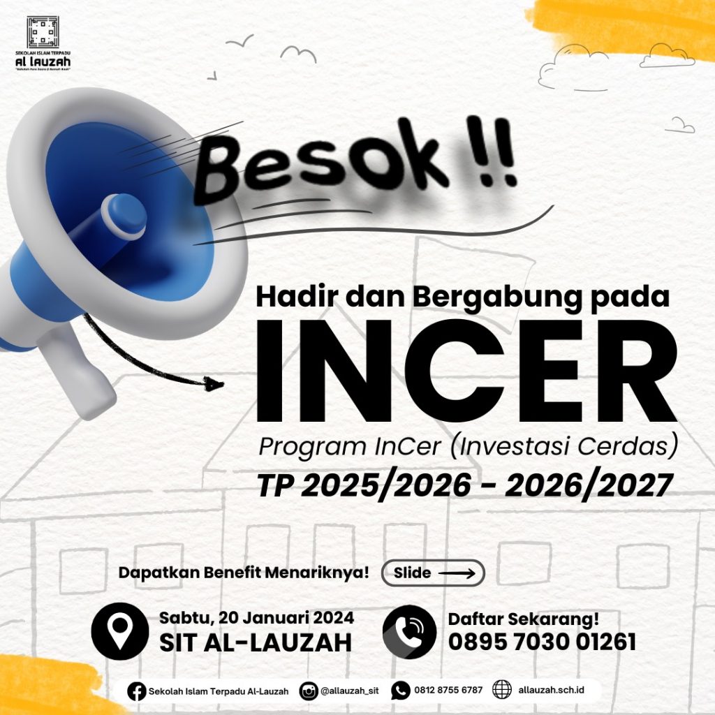 Assalamualaikum Ayah Bunda hebat Bingung mau mencari SMA terdekat di Tangsel? Coba hadir ke SMA IT AL LAUZAH aja.. Yuk cari tahu informasi pendaftarannya dengan berkunjung langsung pada : Hari / Tgl : Sabtu, 03 Februari 2024 Jam kehadiran : 07.00-12.00 WIB Lokasi kegiatan : Ged A SIT Al-Lauzah (https://maps.app.goo.gl/2r3wpJ3C1ZybvGEW7)