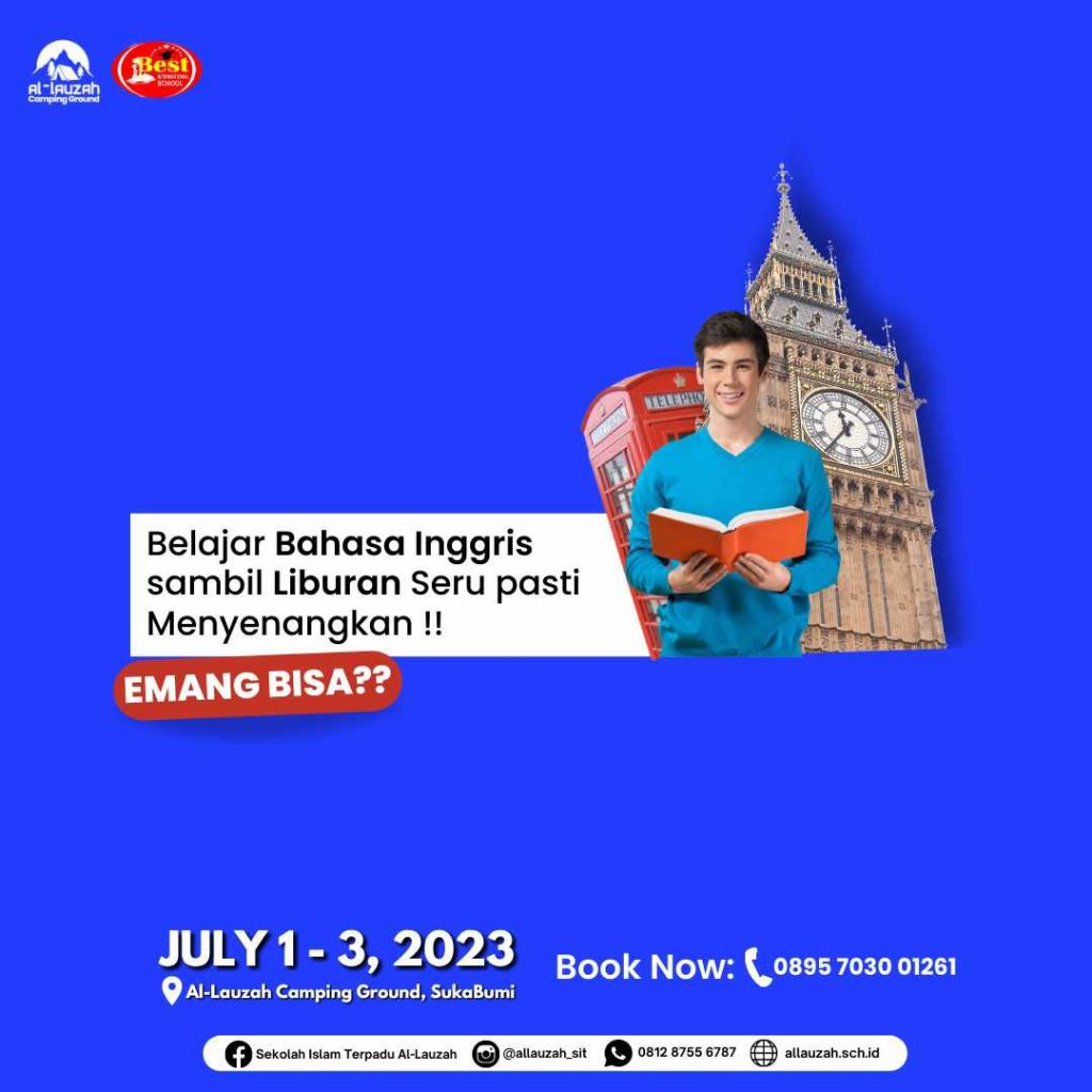 Assalamualaikum Ayah Bunda semoga sehat selalu ya Ayah Bunda sudah merencanakan liburan Ananda ? Jika belum join langsung kegiatan Al Lauzah English Camp Mau mahir berbahasa Inggris dengan belajar langsung dari team pengajar Kampung Inggris Pare langsung? Join Us! Al-Lauzah English Camp (Terbuka untuk pelajar Umum ) July 1-3, 2023 Langsung daftar yuk ke