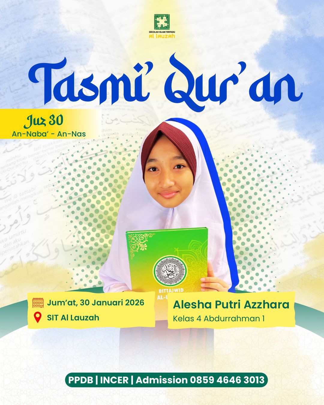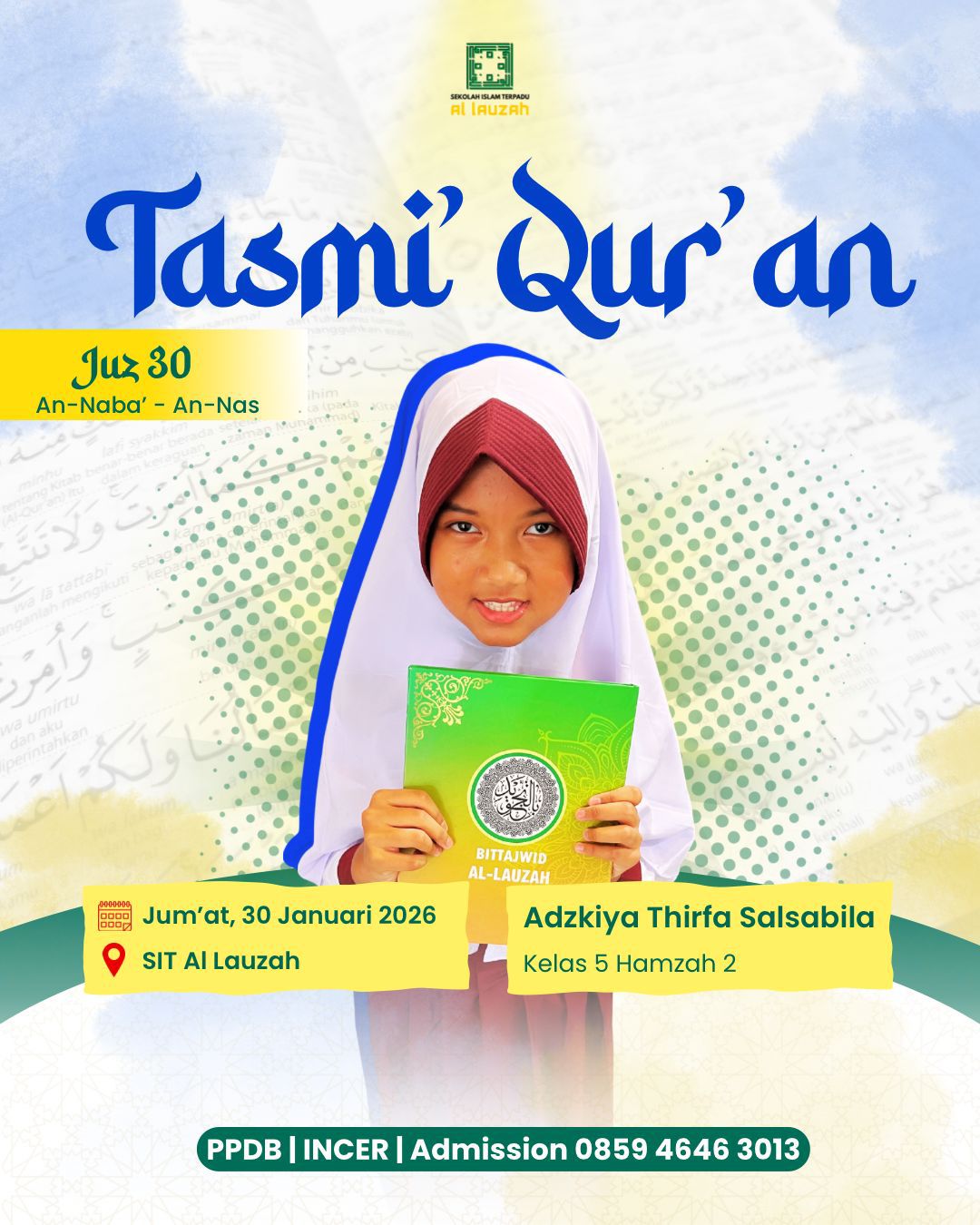 Dengan bangga mengucapkan selamat mengikuti kegiatan Tasmi kepada Teman-teman hebat jenjang SD,SMP dan SMA IT Al Lauzah