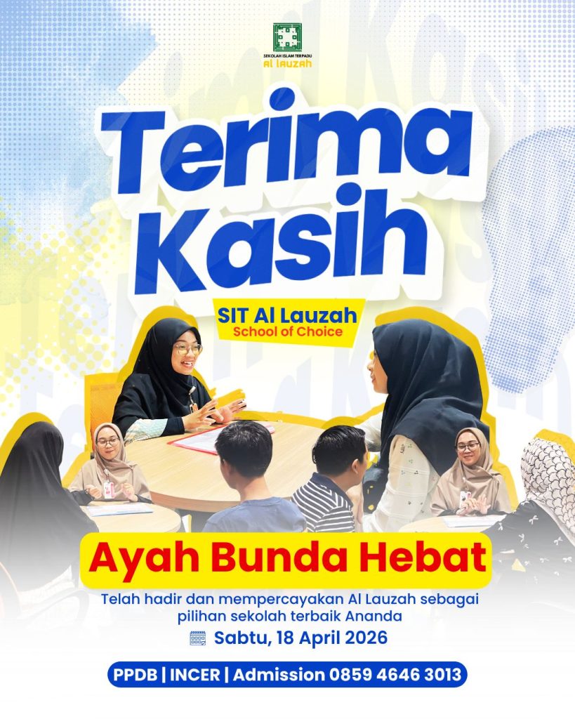 Atas kehadiran dan kepercayaan kepada SIT Al Lauzah sebagai pilihan terbaik untuk Ananda.